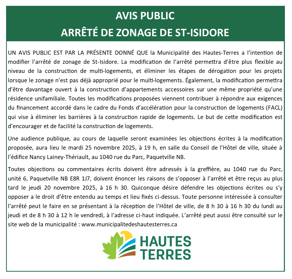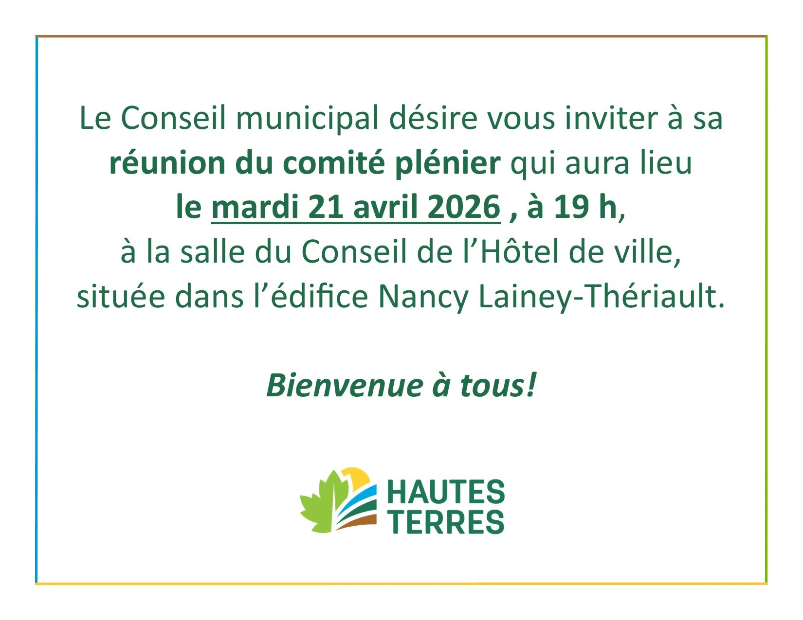 Bienvenue à la Municipalité des Hautes-TerresBienvenue à la Municipalité des Hautes-TerresBienvenue à la Municipalité des Hautes-TerresBienvenue à la Municipalité des Hautes-Terres